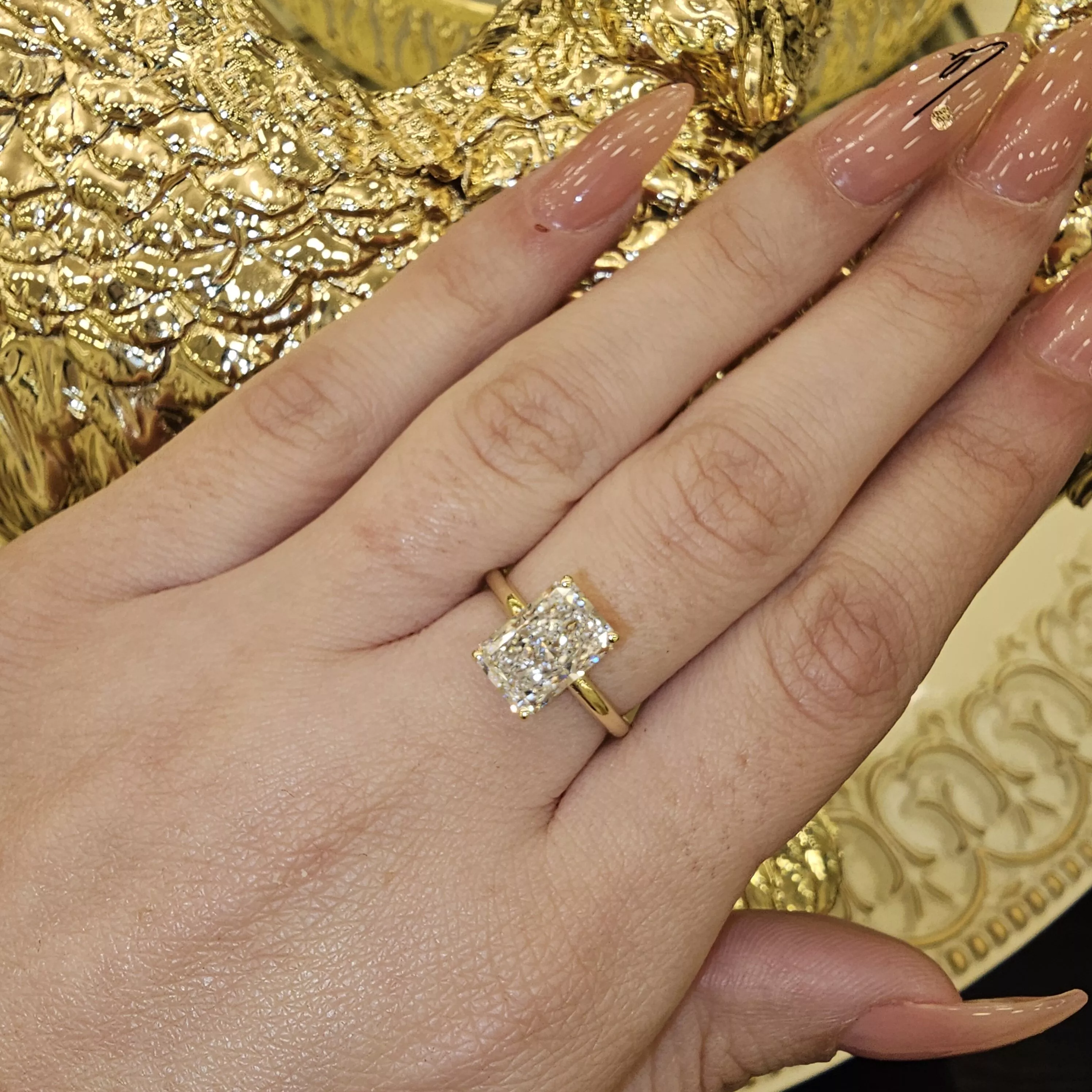 טבעת אירוסין ERO590 – יהלום רדיאנט עם עיטורים עדינים