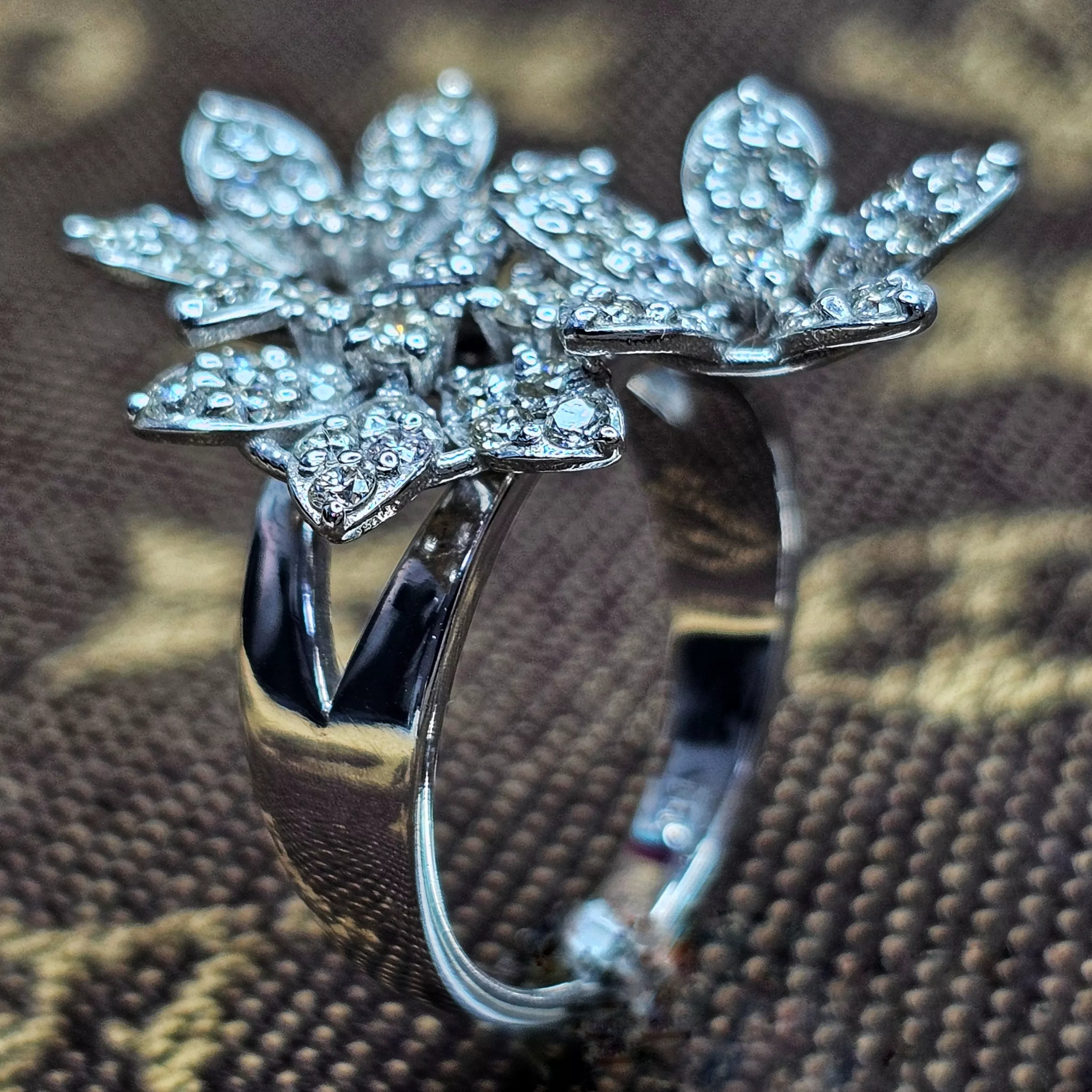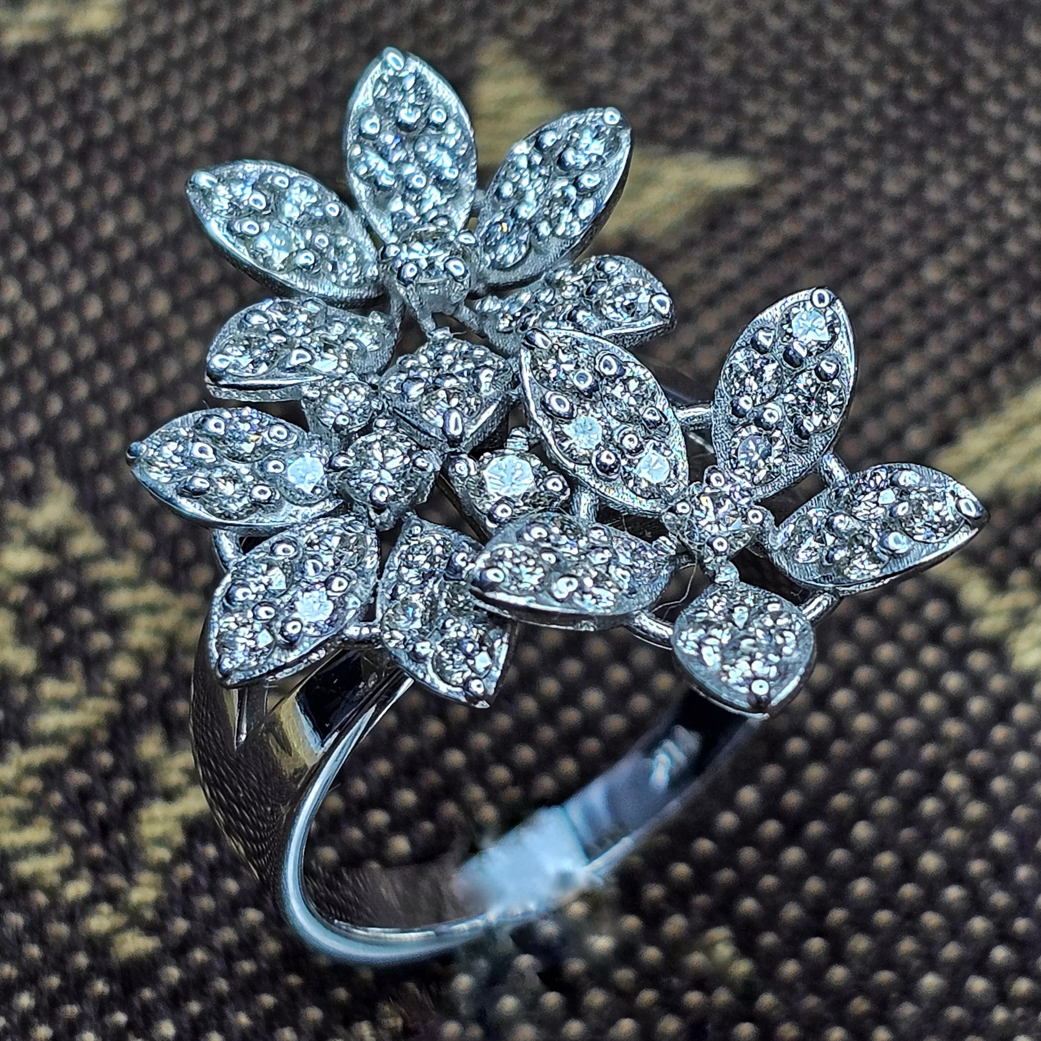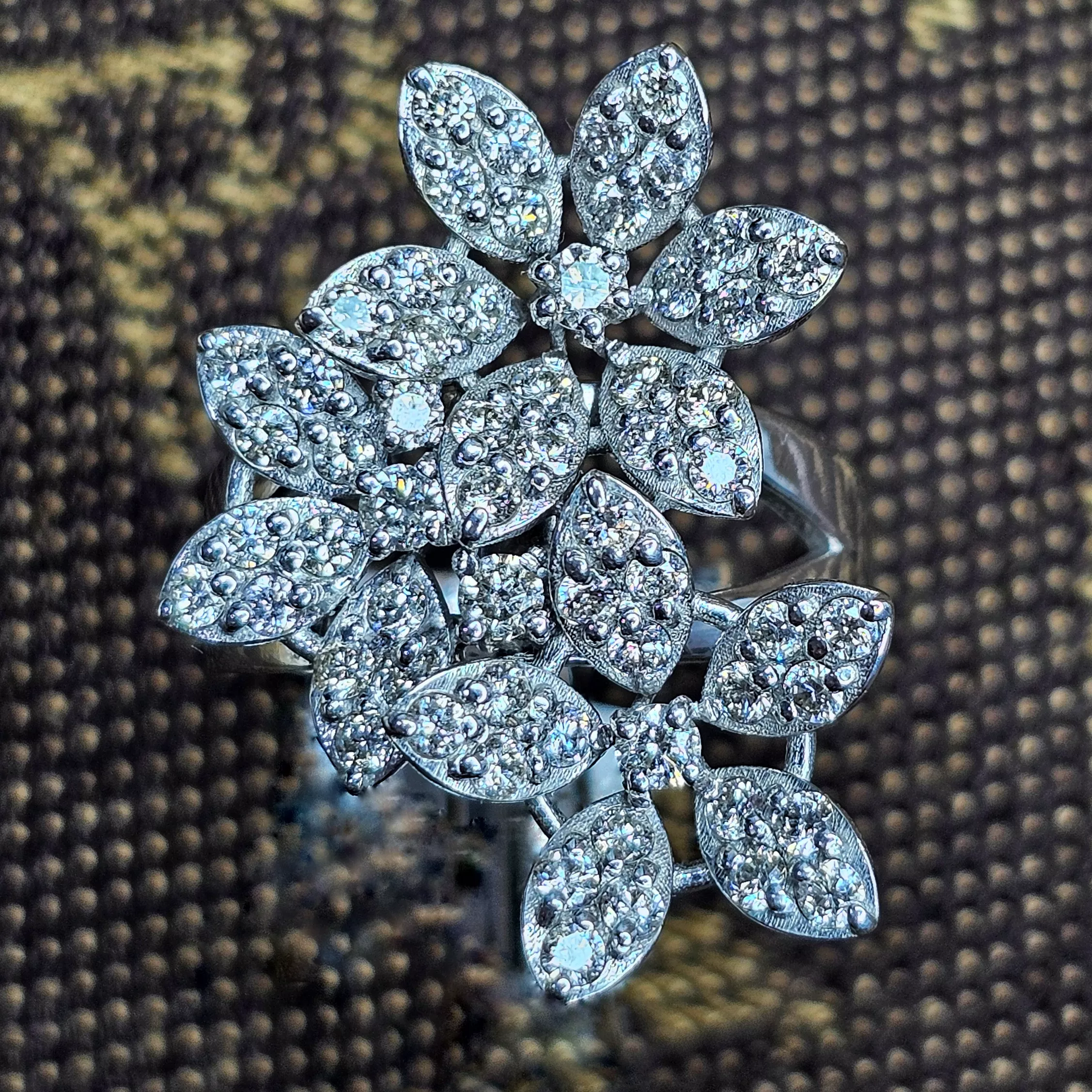 טבעת פרחים 1 קראט יהלומי מעבדה משובצת 61 יהלומים