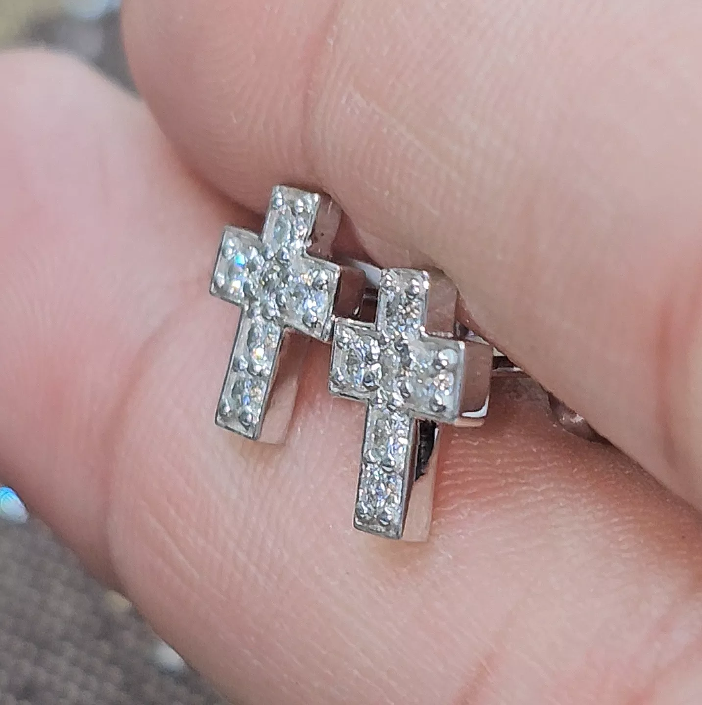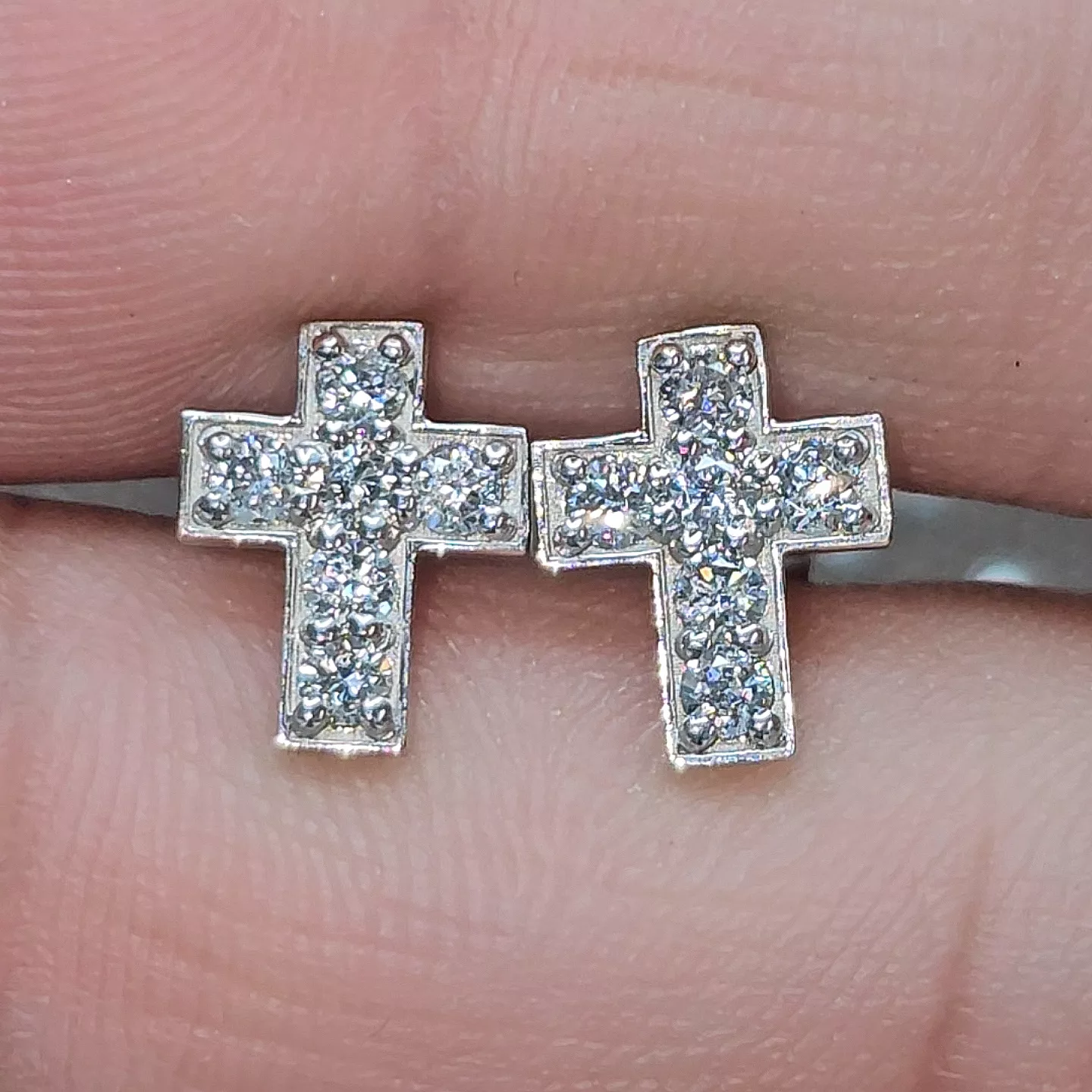 עגילי צלב 0.40 קראט 12 יהלומים משובצים
